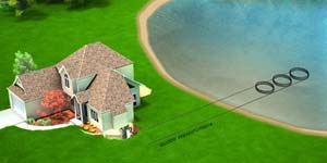 Very economical when a large body of water is available. Coils of pipe are placed on the bottom of the pond or lake to capture geothermal energy.