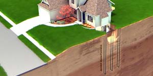 The ideal choice when land surface is limited. Well drilling equipment is used to bore small-diameter holes from 100 to 400 feet deep.